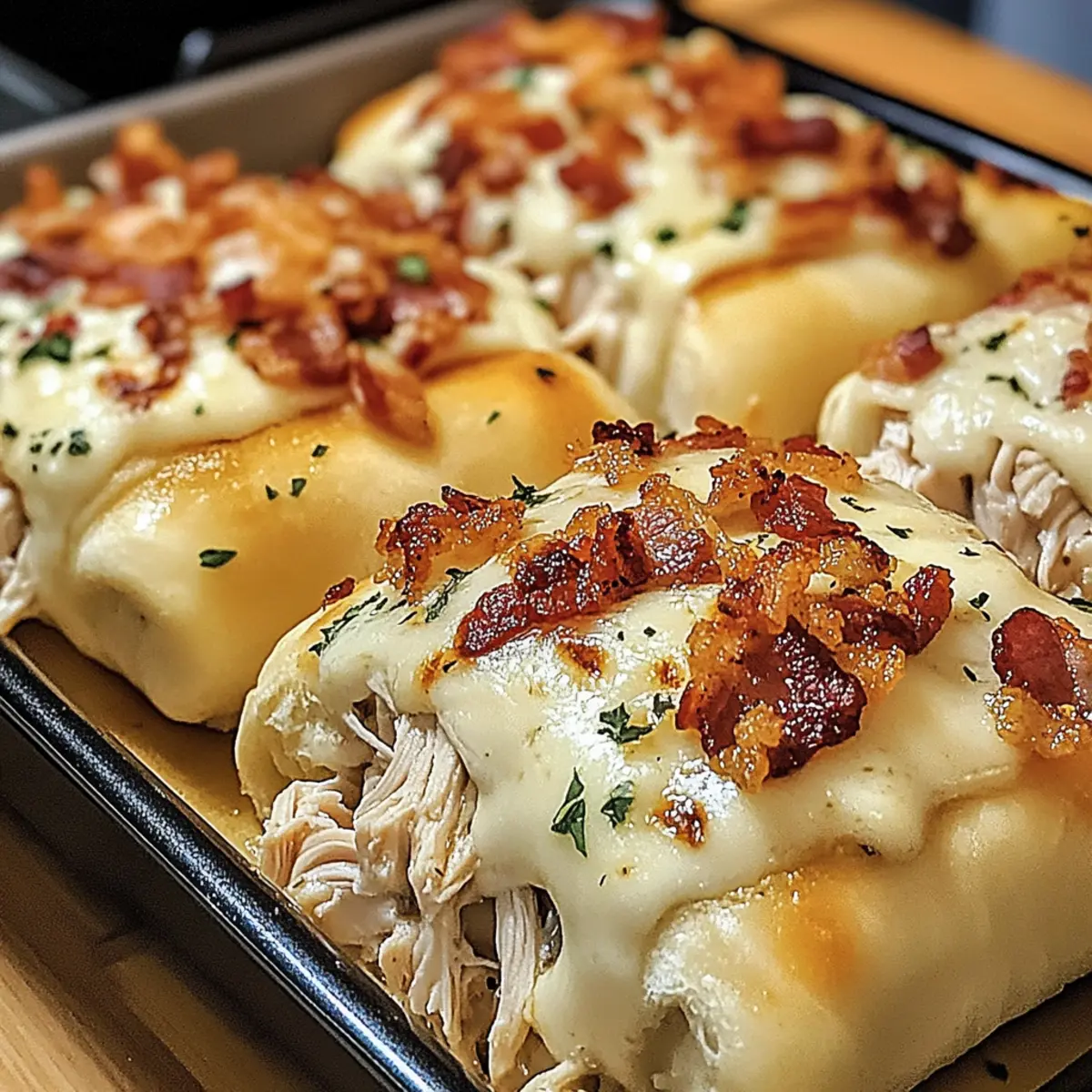 Slide the baking sheet into your preheated oven and bake the Loaded Bacon Chicken Alfredo Stuffed Breadstick Bombs for 20-25 minutes. Keep an eye on them; they should turn golden brown and puff up slightly. The aroma will fill your kitchen, whetting your appetite for when they are ready to enjoy.