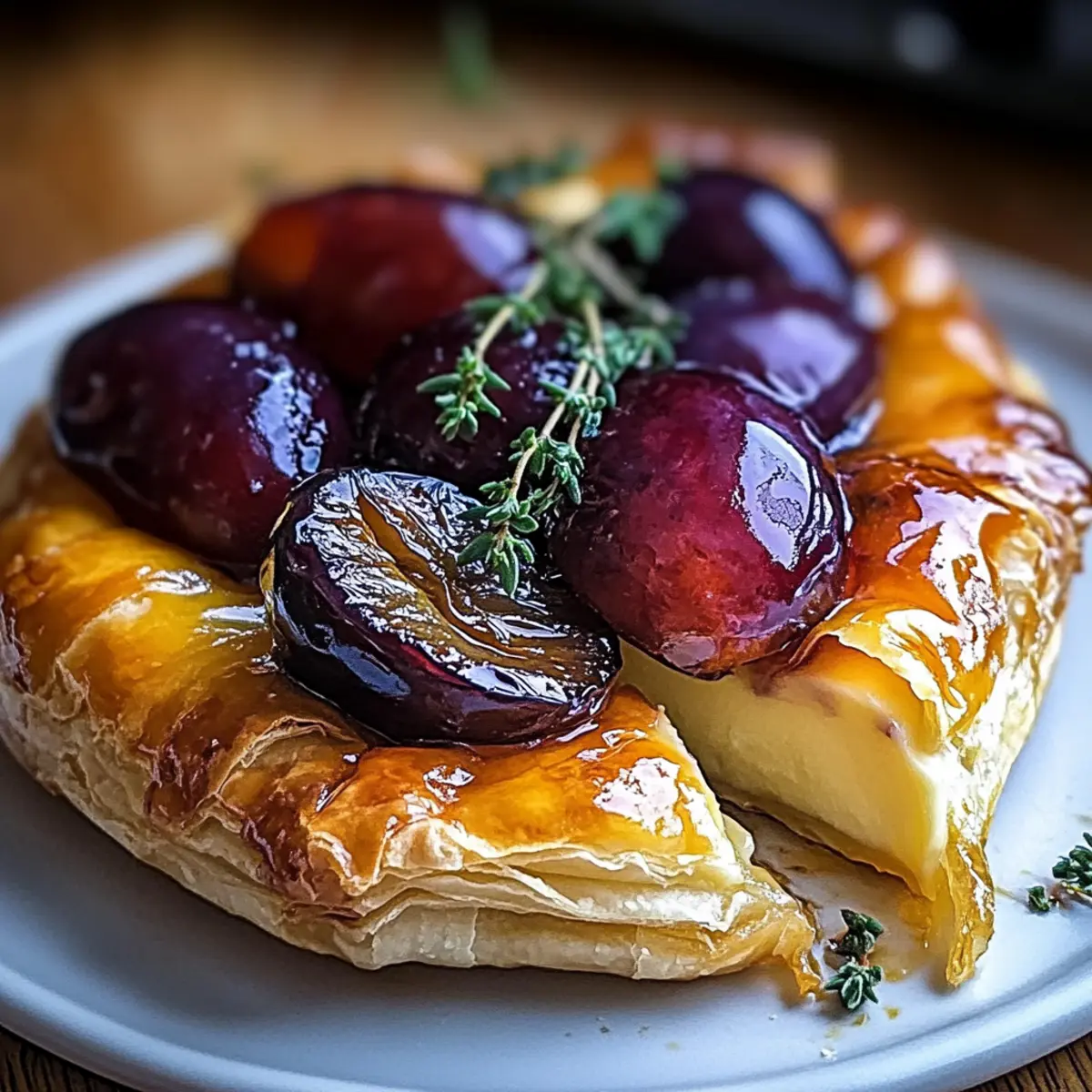Baked Brie in Puff Pastry with Roasted Plums and Thyme Bliss