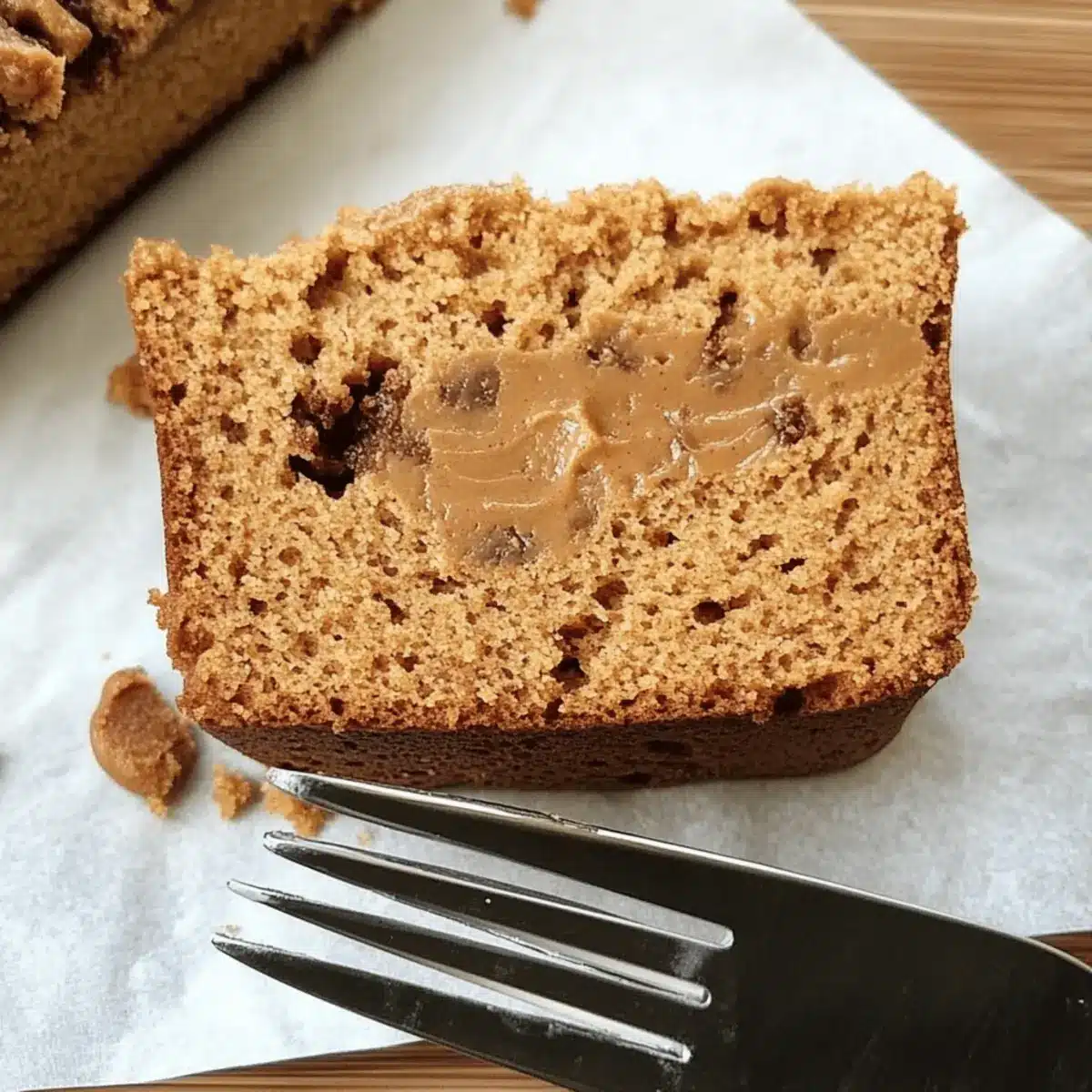 Pour the batter into the prepared loaf pan, smoothing the top for an even bake. Place it in the preheated oven and bake for 45–60 minutes. Check for doneness at the 45-minute mark by inserting a toothpick in the center; it should come out with a few crumbs attached, signaling that your Biscoff Cookie Butter Bread is ready.