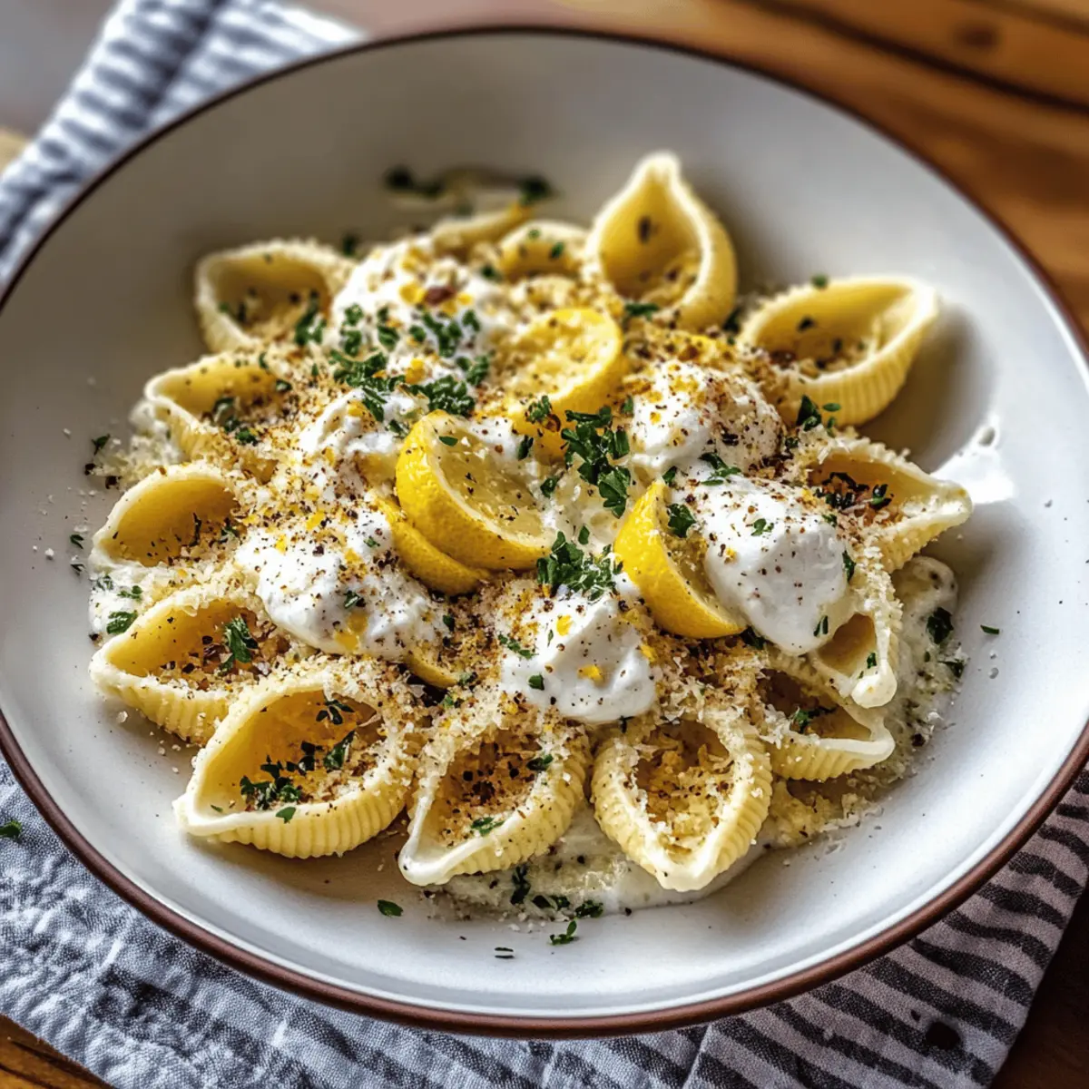 Creamy Burrata Pasta Shells with Roasted Garlic & Lemon Cream