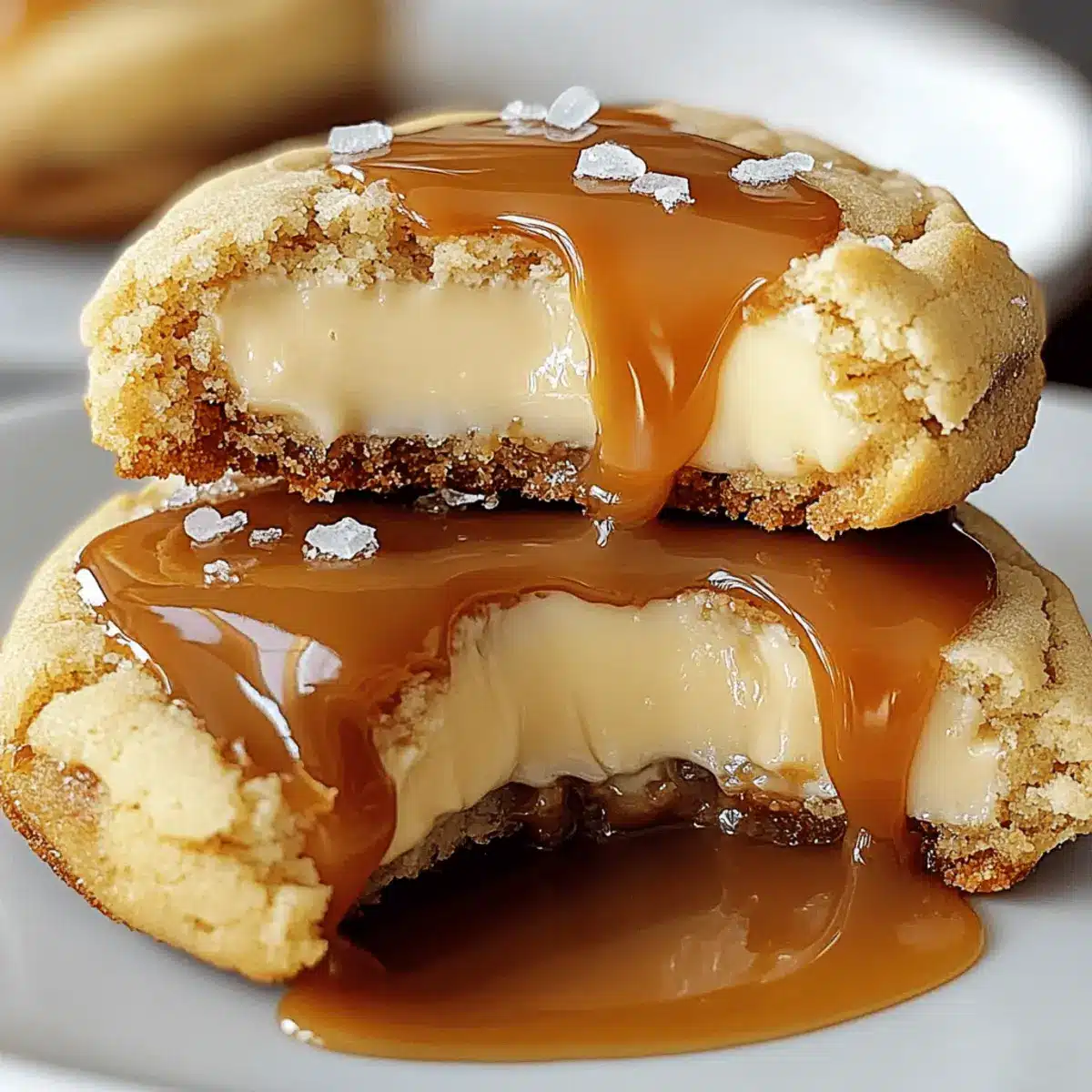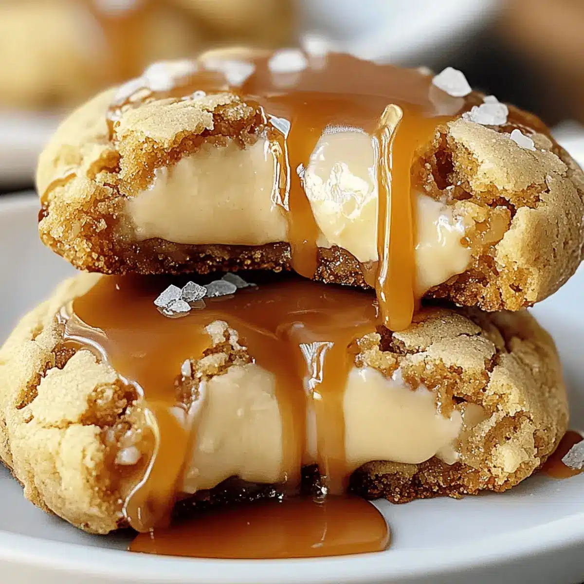 Once the cookies are baked, allow them to cool completely on a wire rack. After cooling, drizzle your favorite caramel sauce generously over each cookie. For added flavor and sophistication, consider sprinkling a pinch of sea salt on top to enhance the wonderful taste of your Caramel Cheesecake Cookies.