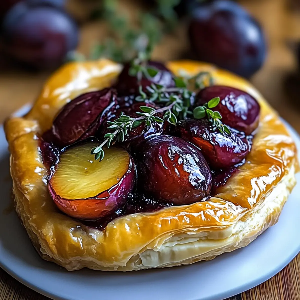 Baked Brie in Puff Pastry with Roasted Plums and Thyme Bliss