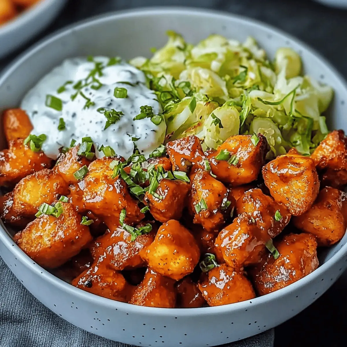 Buffalo Bites Bowl with Crispy Potatoes & Shaved Brussels Bliss
