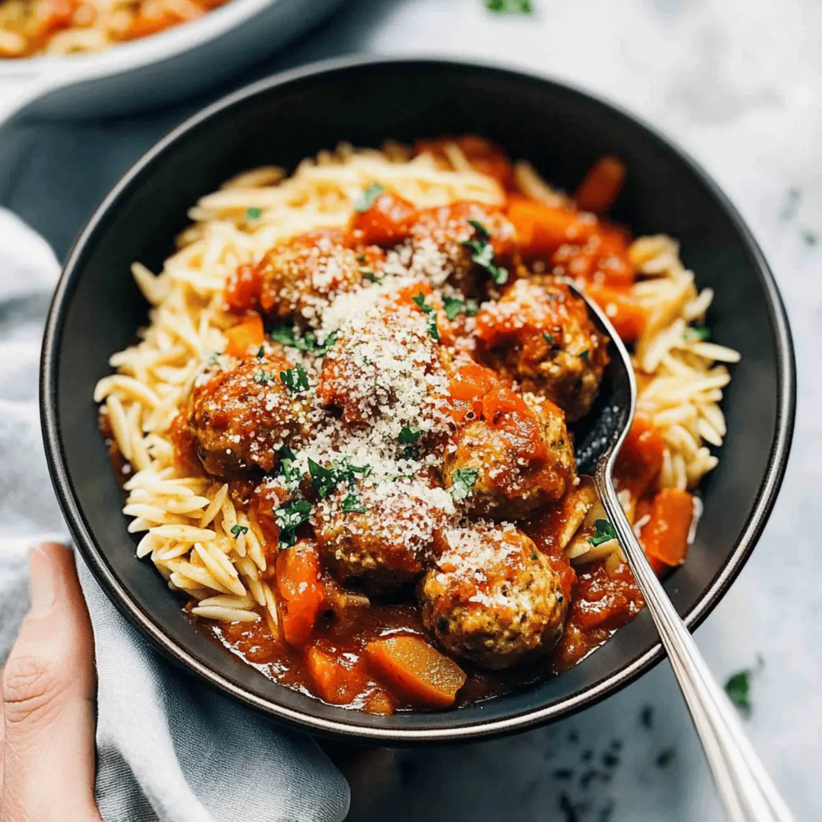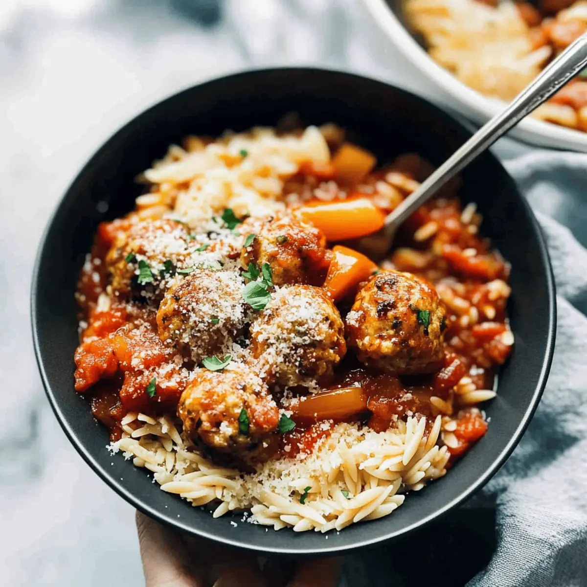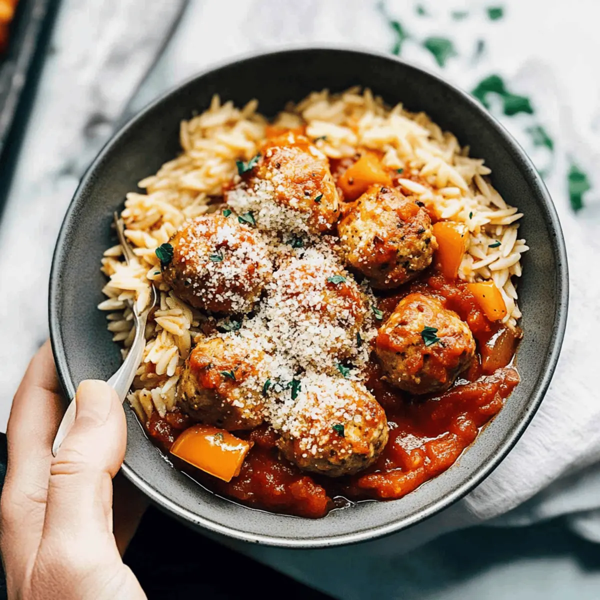 Irresistible Chicken Meatballs with Peppers and Orzo Bliss