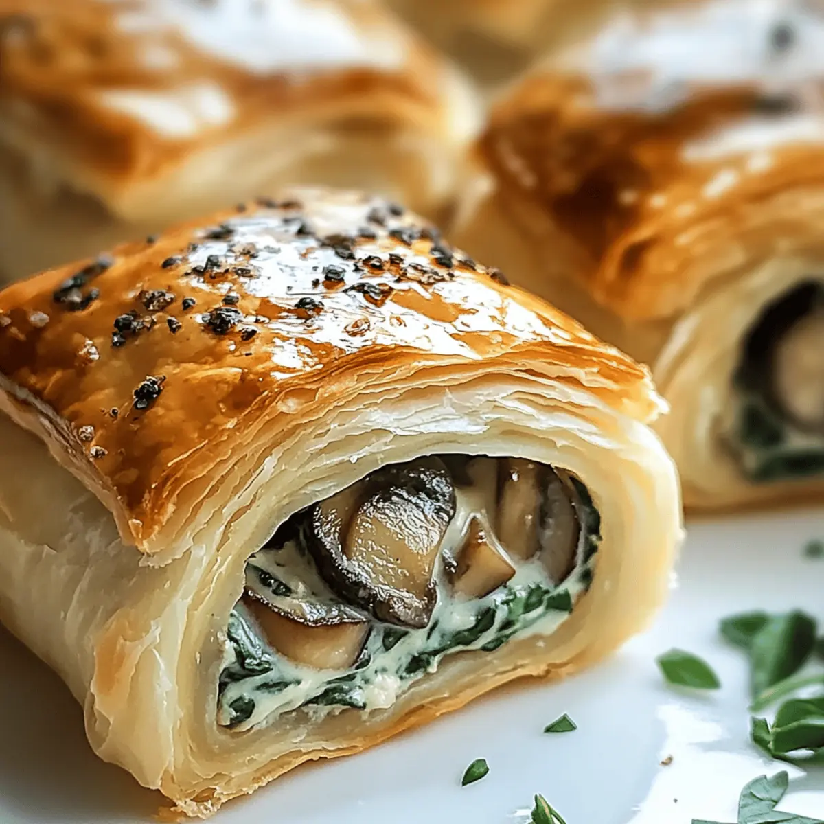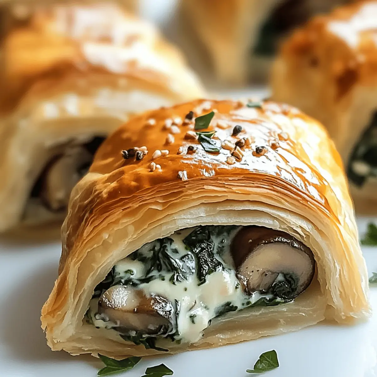These Creamy Mushroom and Spinach Stuffed Pastry Bites are perfect for busy cooks who want to save time in the kitchen! You can prepare the filling up to 3 days in advance by sautéing the mushrooms and spinach, then mixing in cream cheese and shredded cheese; simply refrigerate it in an airtight container. Additionally, you can assemble the pastry bites and freeze them unbaked for up to 1 month; just ensure they’re well-sealed to prevent freezer burn. When you’re ready to serve, bake them directly from the freezer, allowing an extra few minutes to achieve that golden, flaky finish. This method not only simplifies meal prep but ensures your pastry bites remain just as delicious, making entertaining a breeze!