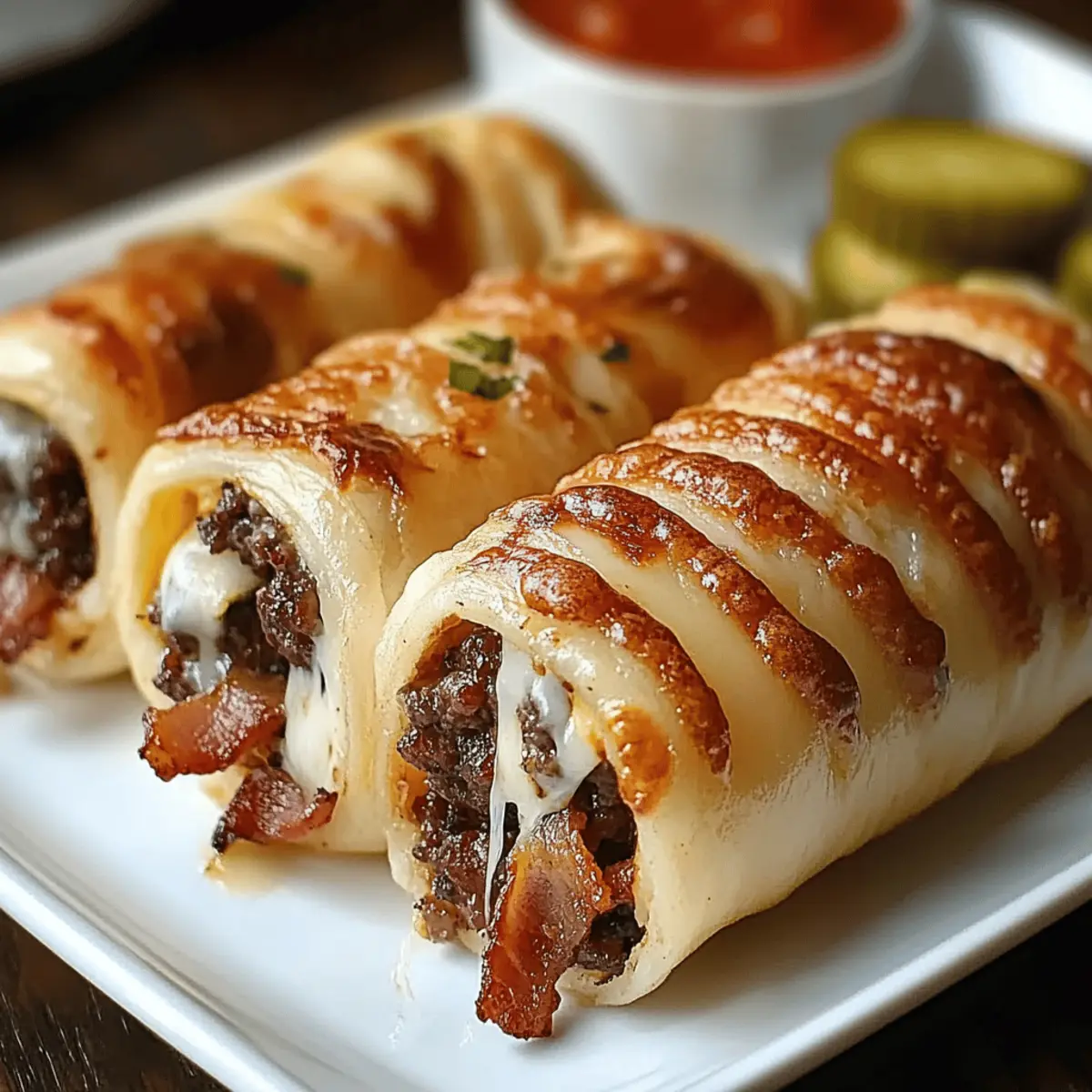 Once baked, remove the rollups from the oven and let them cool slightly. Garnish with fresh parsley for a pop of color and serve warm with your favorite dipping sauces. Every bite of your Garlic Butter Bacon Cheeseburger Rollups will be a delightful experience, perfect for sharing or enjoying all on your own!