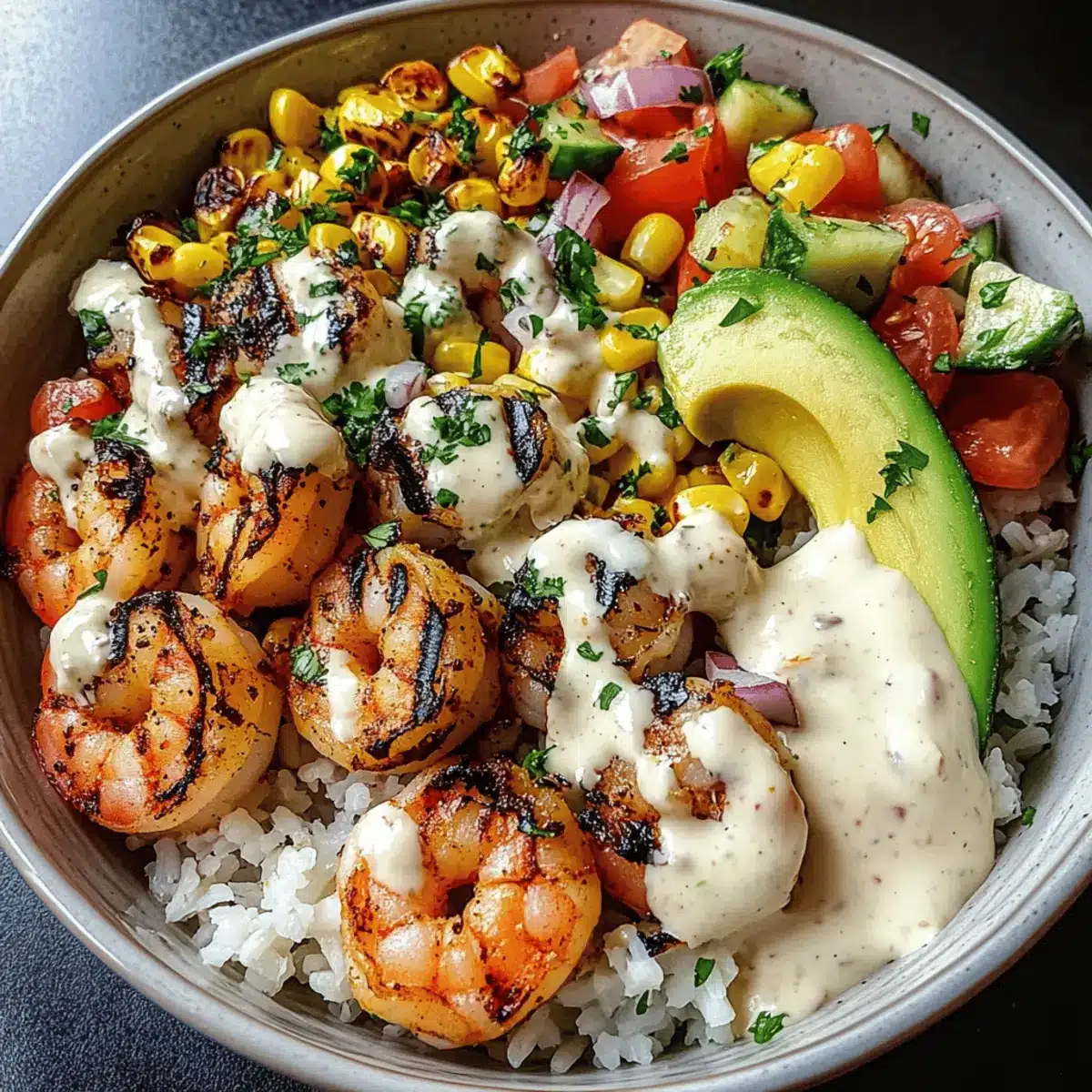 Dive into this Grilled Shrimp Bowl with Avocado, Corn Salsa & Creamy Sauce and discover how each ingredient comes together to create a delightful culinary experience!