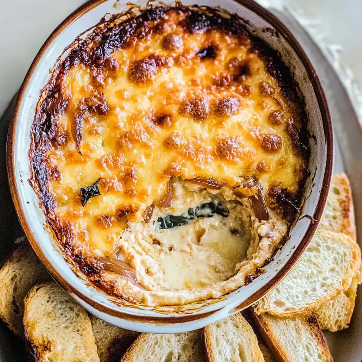 Get ready to elevate your appetizer game with this delightful hot caramelized onion dip!