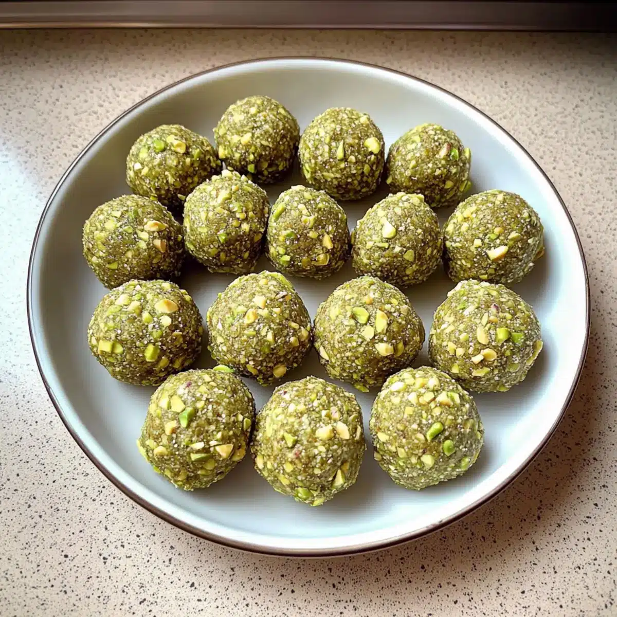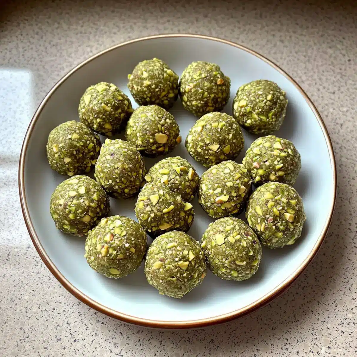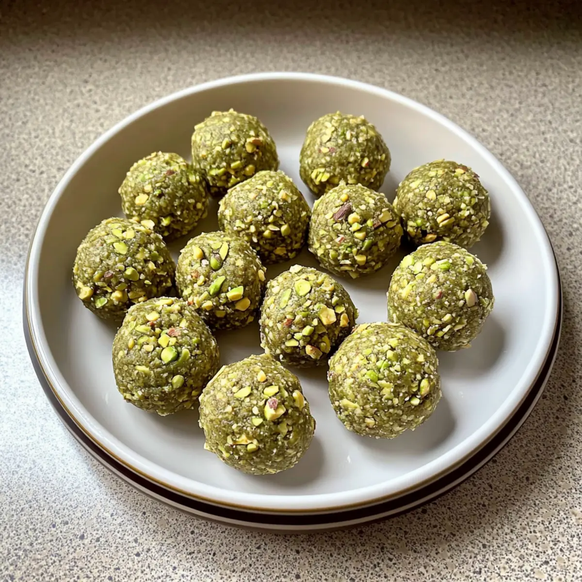 - Once firm, scoop the mixture into small balls and roll them in finely chopped pistachios.