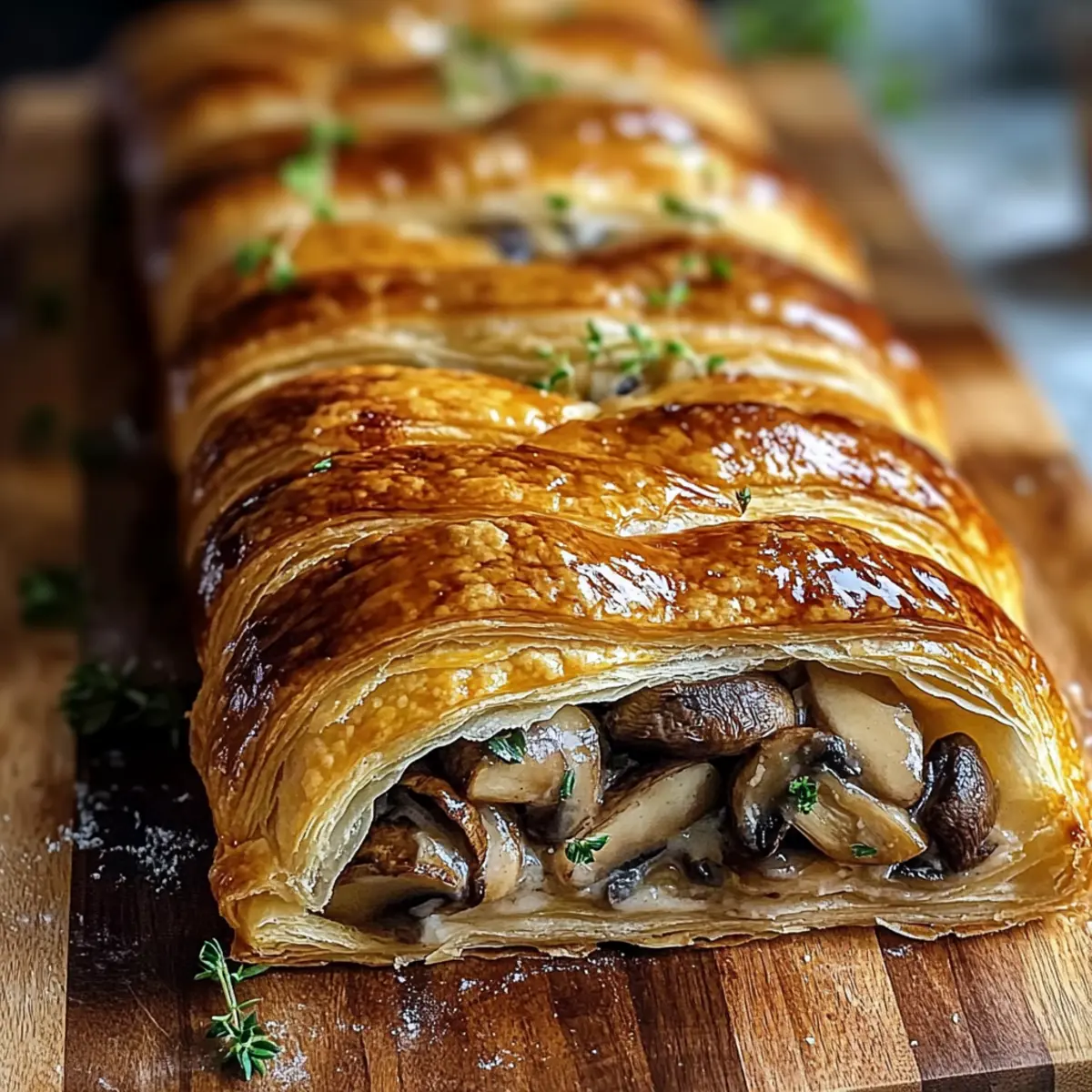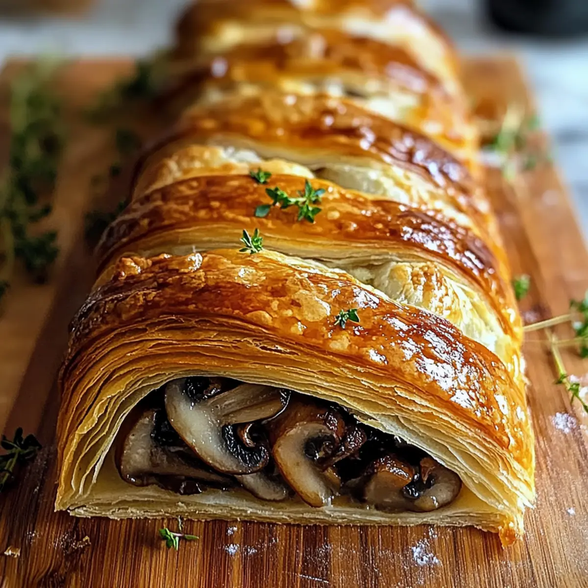 Irresistible Flakiness: This Savory Mushroom & Gruyère Puff Pastry Braid features a perfectly golden and flaky crust that melts in your mouth.