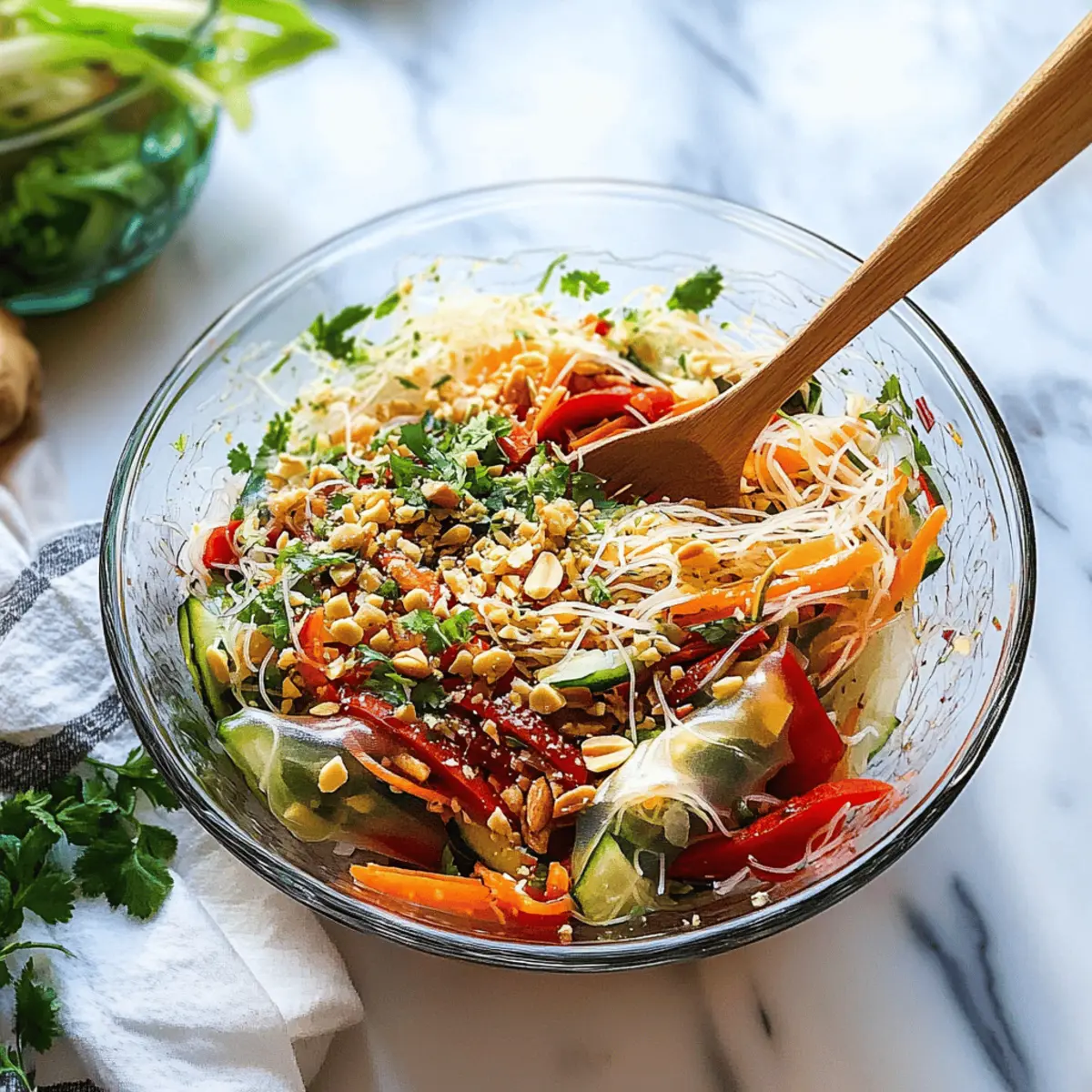 Experiment with Noodles: Try different noodles, such as zucchini noodles or quinoa, to mix up your Spring Roll Salad. Just ensure any substitutions maintain texture and flavor balance.