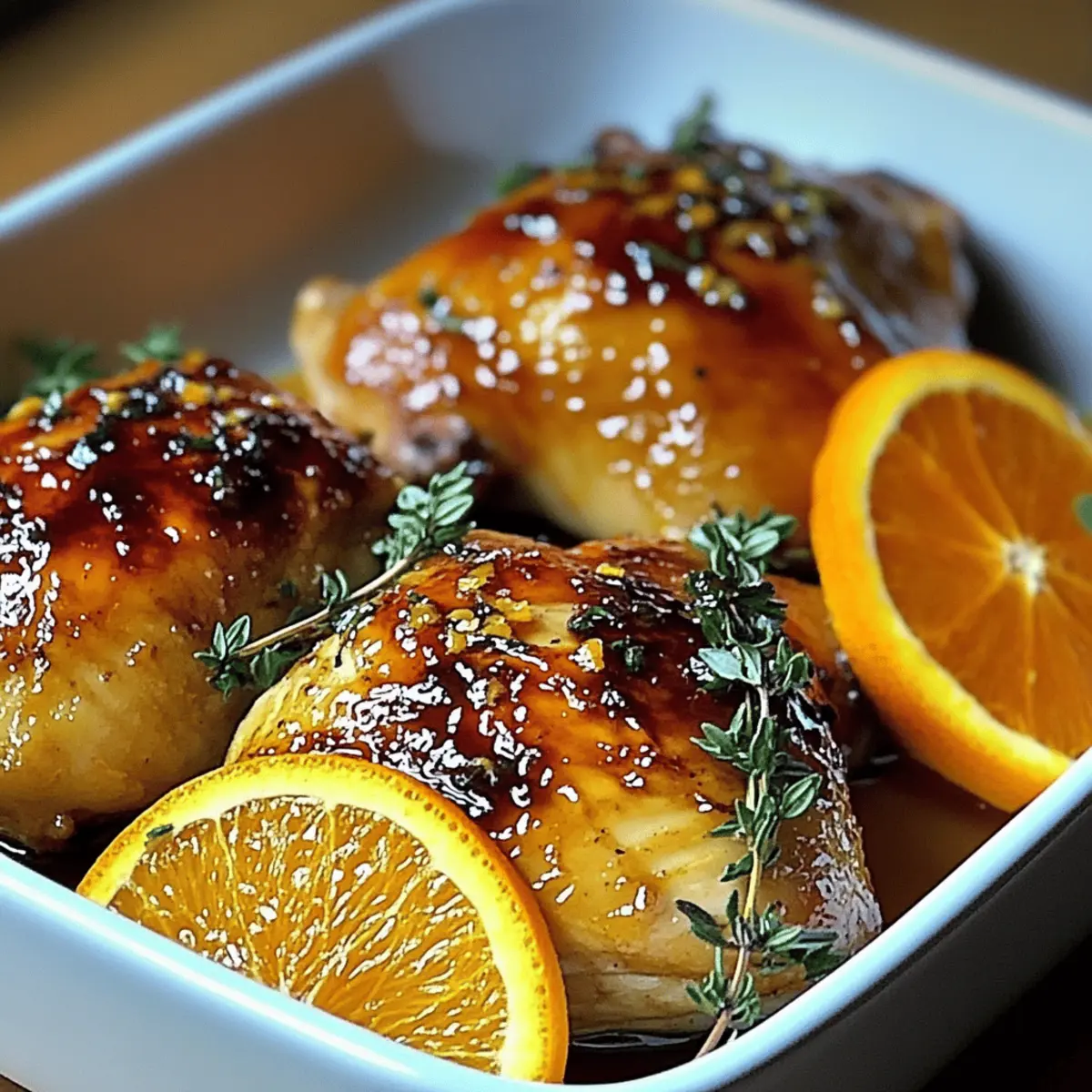 In a mixing bowl, whisk together fresh orange juice, honey, olive oil, and thyme until well combined. This vibrant glaze will coat the chicken beautifully, imparting a sweet and tangy flavor profile. Pour the glaze over the chicken, ensuring an even coating to maximize the taste in every bite.