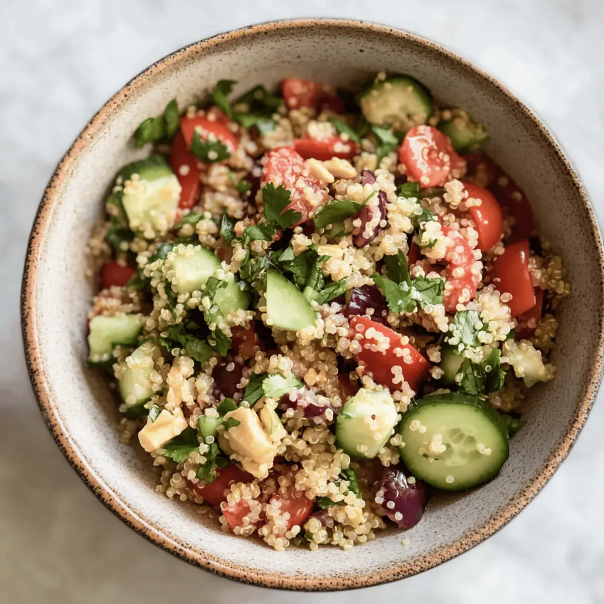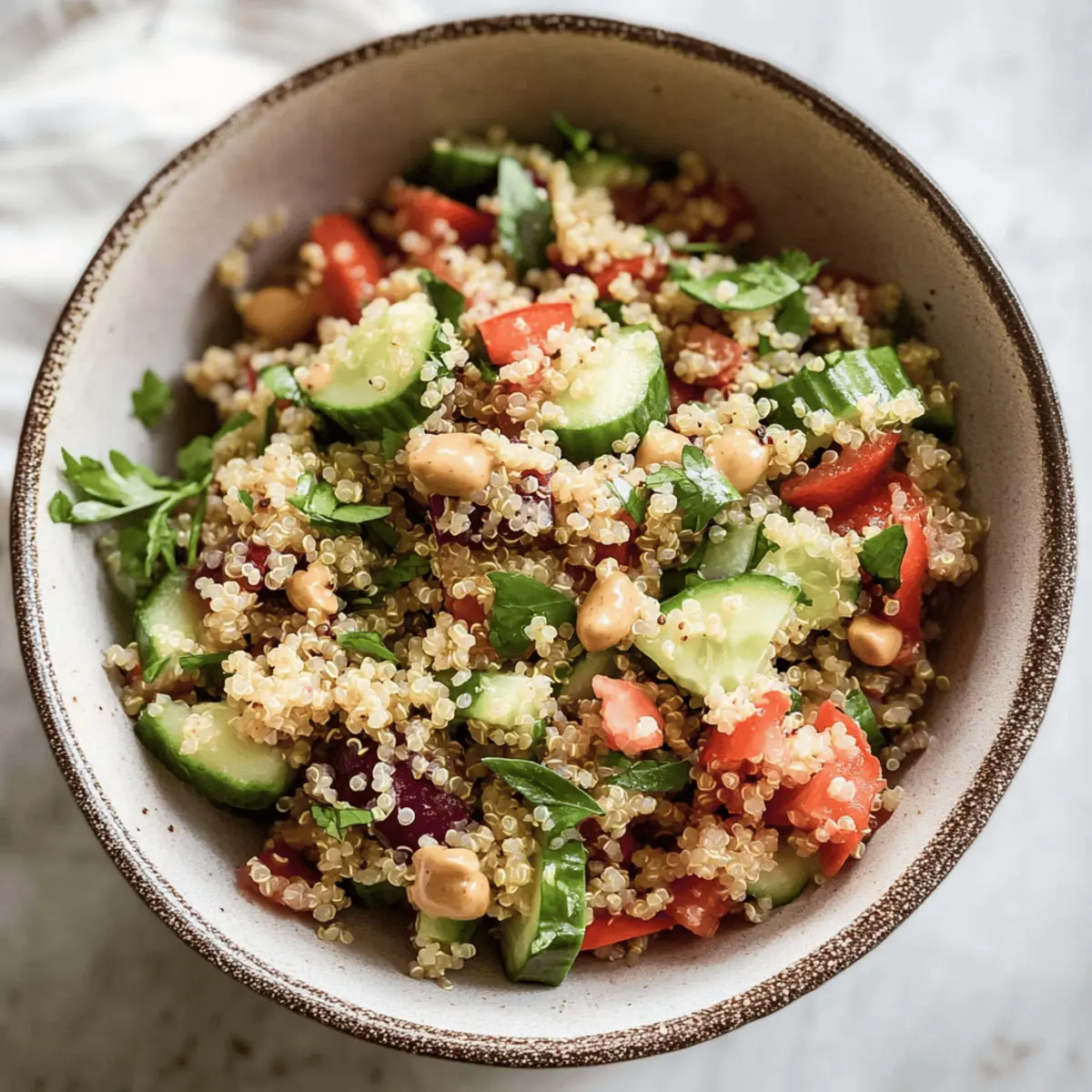 Crisp textures: The crunch of fresh veggies complements the fluffy quinoa and creamy dressing beautifully.